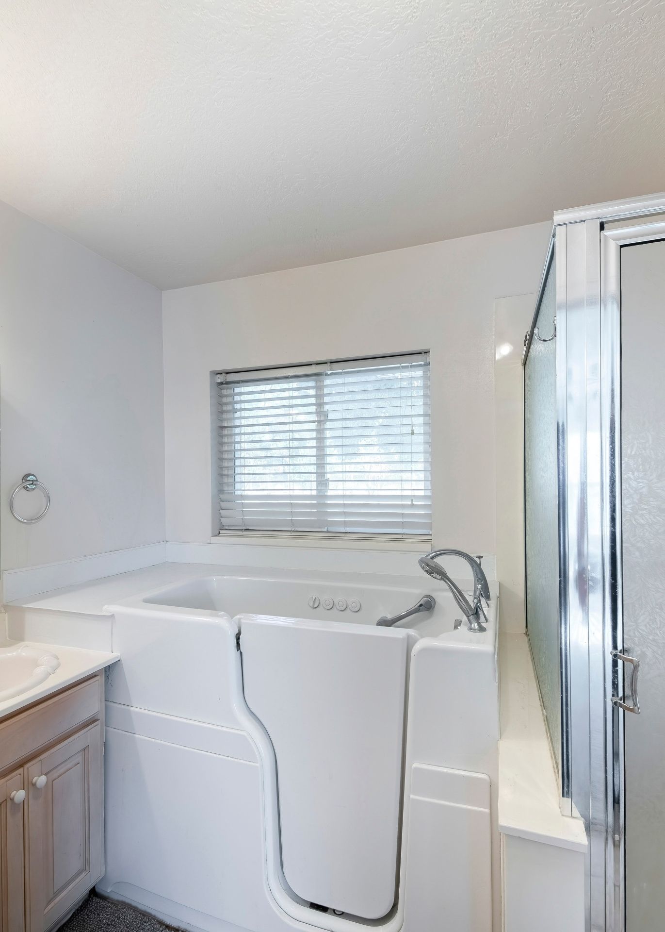 Your installer removes the old tub, checks the subfloor for any soft spots or water damage, and fits the walk-in tub into the existing footprint in your Newport News bathroom. The door seal is tested before grouting, and grab bars are mounted where you can reach them while seated or standing.
